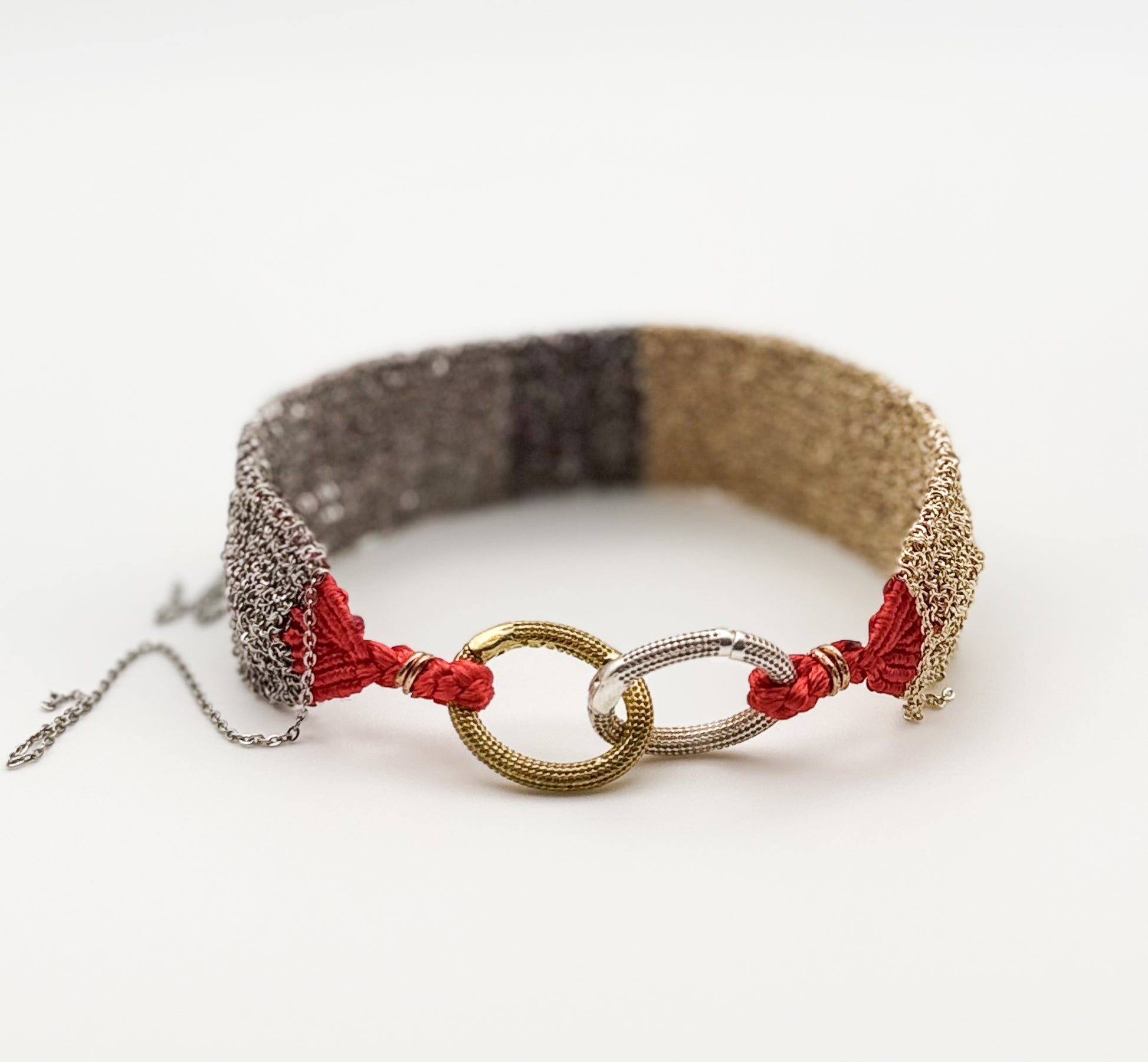 Red Thread and Mixed Metal Chain Bracelet (Adjustable)